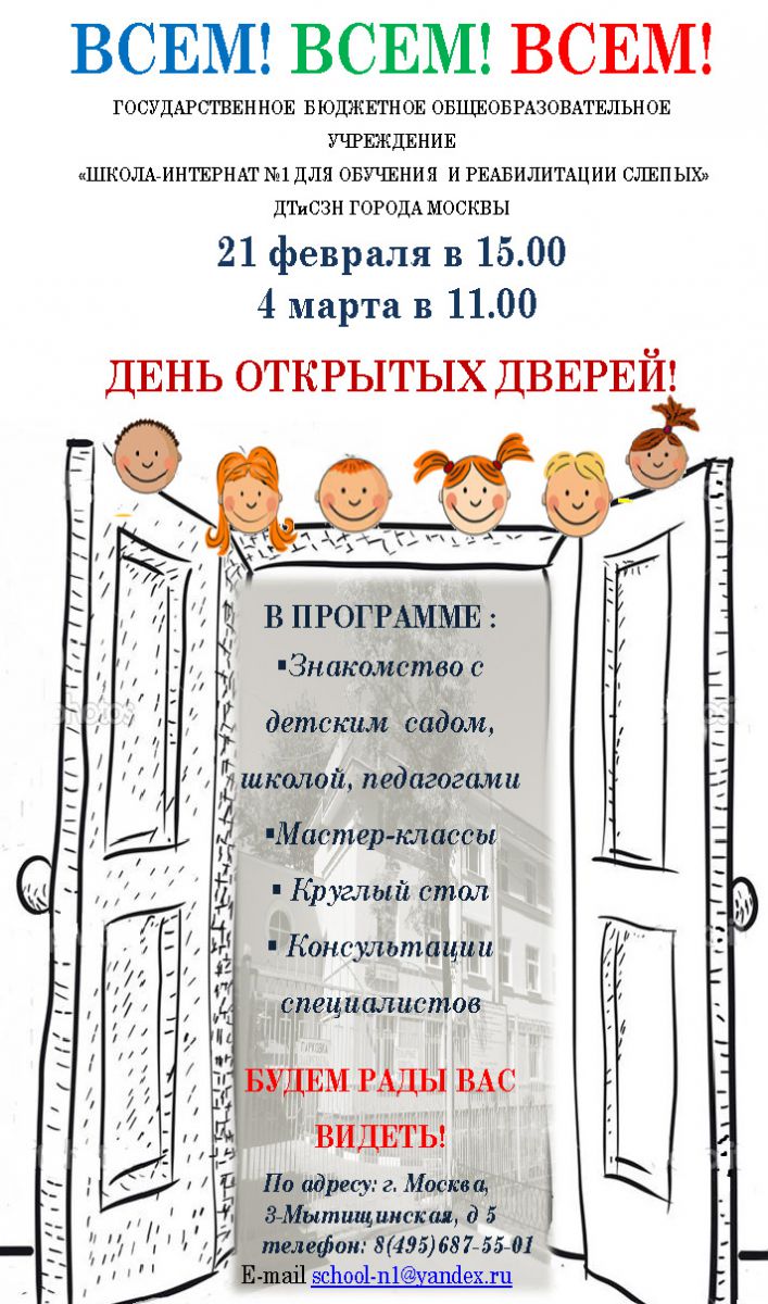 ШКОЛА-ИНТЕРНАТ №1 ДЛЯ ОБУЧЕНИЯ И РЕАБИЛИТАЦИИ СЛЕПЫХ приглашает на День открытых дверей!